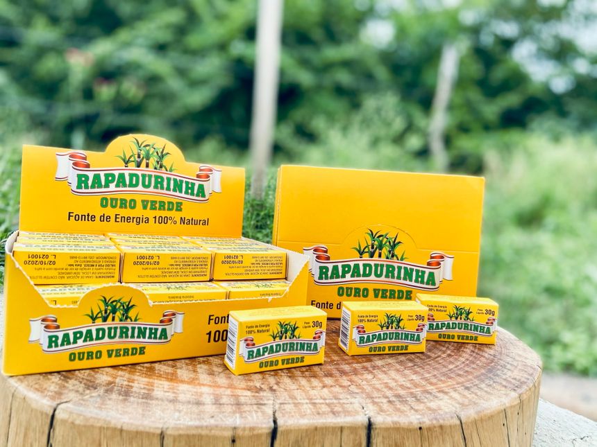 A Rapadurinha de Minas é um doce artesanal produzido em Minas Gerais, feito apenas com caldo de cana-de-açúcar integral, sem conservantes, corantes ou açúcar refinado. Apresentada em pequenos tabletes (geralmente 25g), é rica em ferro, cálcio, potássio e vitaminas do complexo B, oferecendo energia rápida e sustentável.