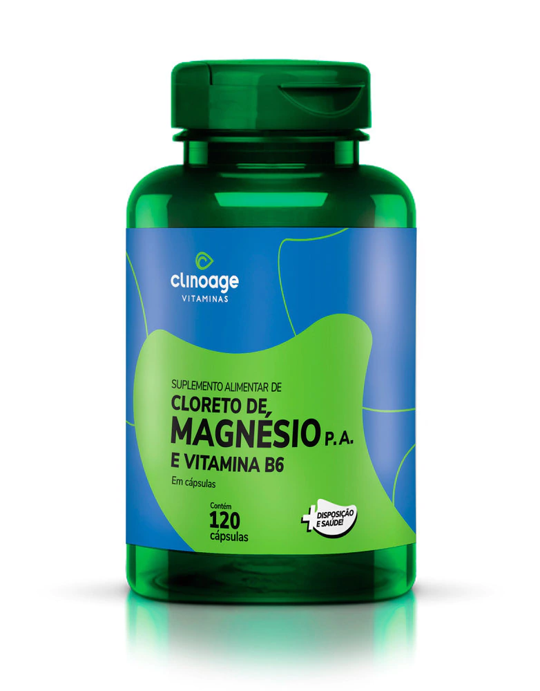 Cloreto de Magnésio P.A. 600MG Clinoage 120 capsulas. As vitaminas e suplementos Clinoage primam pela excelência de seus produtos empregando matéria prima de alta qualidade e fornecedores certificados, entregando aos seus clientes produtos que se distinguem dos demais pelo alto nível de pureza.