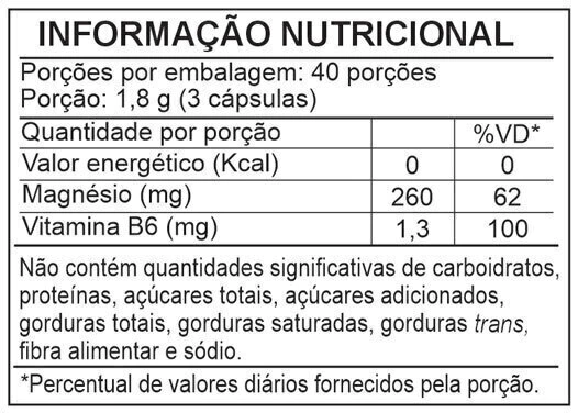 Ingredientes: Vitamina Cloreto de magnésio, lubrificante estearato de magnésio e antiumectante dióxido de silício.
