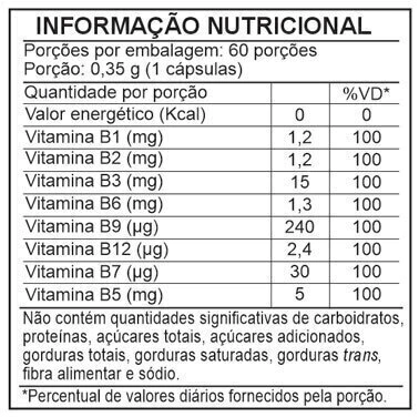Ingredientes: Nicotinamida, Cloridrato de Piridoxina, Riboflavina, Nitrato de Tiamina, Ácido Ptreoilmonoglutâmico, Biotina, Pantotenato de Cálcio, e Cianocobalamina, Estearato de Magnésio Vegetal, (excipiente) Dióxido de silício (excipiente)