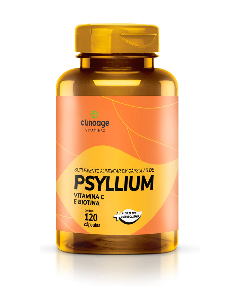 Pssylium +vit c + biotina 600mg Clinoage 120 capsulas é uma fibra alimentar em cápsulas.